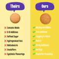 Millets are a great source of fibre & minerals like Calcium, Iron & Vitamin B. These Dry Fruits biscuits are baked with Butter & nuts, Early Foods cookies become a great source of food fats too and also making it a great school snacks for kids. Good fats are important for kids not just to support weight gain, but also help in brain development!