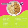 Millets are a great source of fibre & minerals like Calcium, Iron & Vitamin B. These Multigrain biscuits are baked with Butter & nuts, Early Foods cookies become a great source of food fats too and also making it a great school snacks for kids.